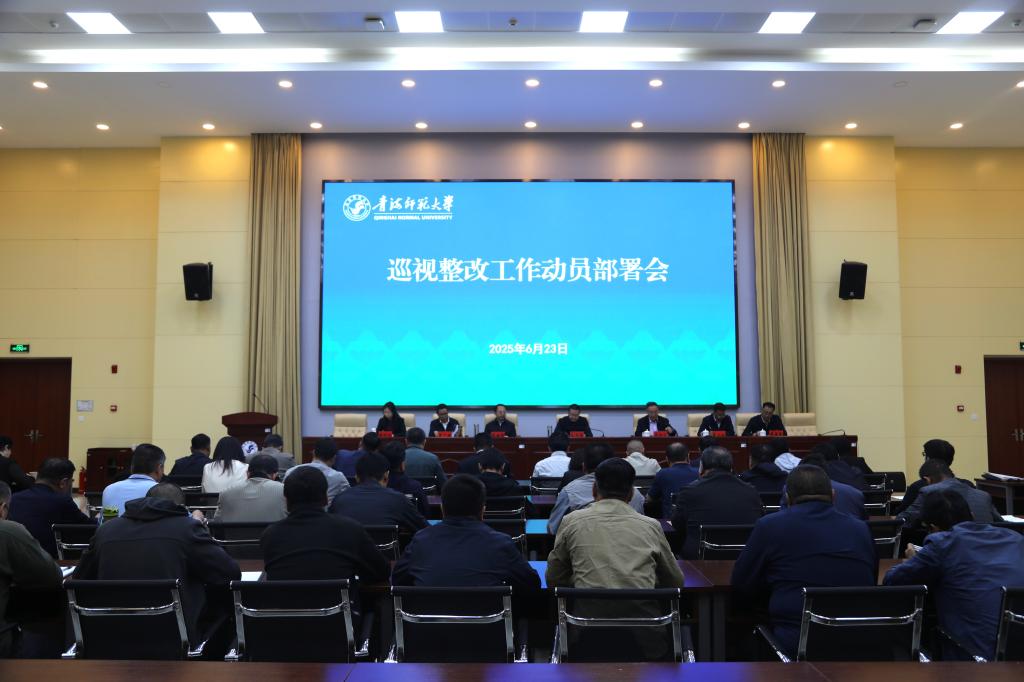 6月23日下午,学校召开巡视整改工作动员部署会。校党委书记毛学荣作动员讲话,校党委副书记许存宁主持会议。在校校领导出席会议,学校各职能部门、教辅单位主要负责人,各学院党委书记、院长及三所附属实验中学党...26 2025-06 -