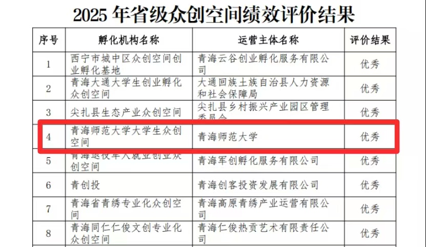 近日,青海省科技厅2025年省级众创空间绩效评价结果公布,作为国家级创新创业学院建设单位,beat365在线唯一官网大学生众创空间凭借特色孵化实力,第七次斩获“优秀”等次,同步获20万元奖励,其“以院带空间、以空间辐...12 2025-11 -