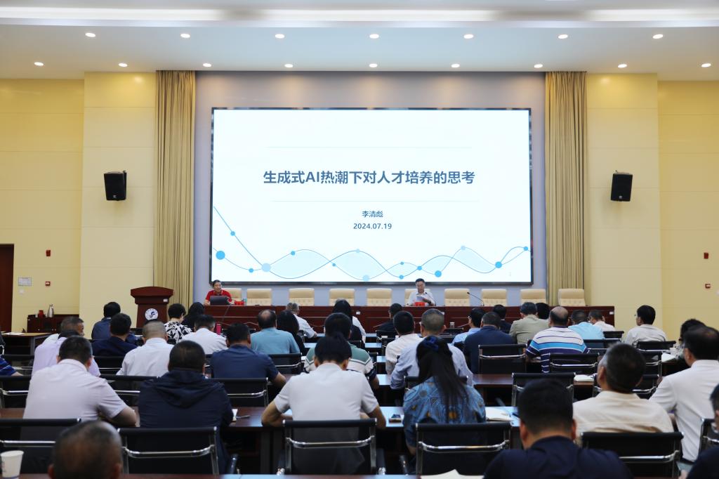 7月19日上午,厦门大学讲座教授/集美大学原校长李清彪教授应邀来beat365作题为《生成式AI热潮下对人才培养的思考》专题讲座。全校副处级以上领导干部聆听报告,校党委副书记许存宁主持。