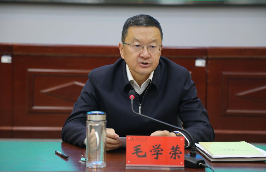 10月25日上午,校党委书记毛学荣在校党委理论学习中心组扩大学习会上宣讲全国教育大会精神。在家校领导、全校副处级以上领导干部参会,会议由校党委副书记许存宁主持。