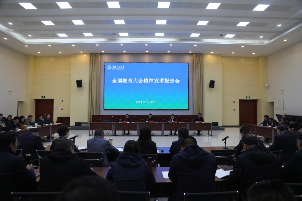 毛学荣指出,全国教育大会是在以中国式现代化全面推进强国建设、民族复兴伟业的关键时期召开的一次具有里程碑意义的重要会议。习近平总书记在大会上发表的重要讲话,深刻回答了新时代新征程为什么要建设教育强国、建设什么样的教育强国、怎样建设教育强国等一系列重大问题,是指导新时代新征程教育工作的纲领性文献。并紧密结合学校实际,进一步深入分析了beat365关于教育、科技、人才工作等方面的战略部署和举措。他要求,全校各单位要持续加强党的全面领导,紧紧围绕立德树人根本任务,深入推进高等教育综合改革,全面深化教育教学改革、科研工作改革、人事制度改革、内部管理体制改革,为学校高质量发展提供强大动力。他强调,全校广大师生要深入学习宣传贯彻好全国教育大会精神,将学习贯彻习近平总书记在全国教育大会上的重要讲话精神同贯彻落实省委十四届七次全会部署和学校第八次党代会改革举措结合起来,做好大会精神转化为工作成效的后半篇文章,以钉钉子精神,推动大会成果入脑入心,扎实推进全国教育大会精神和教育强国建设规划纲要落地见效。