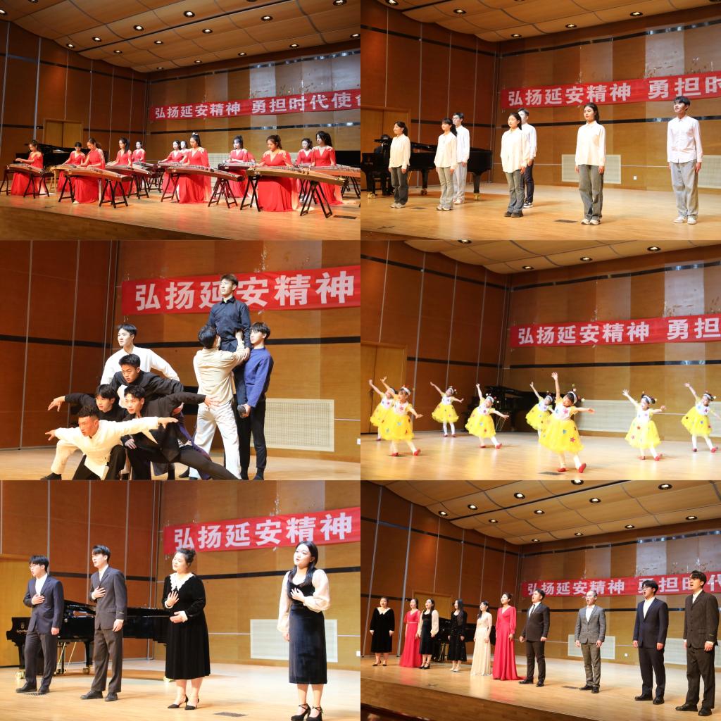 现场会上,与会人员分别参观了“两弹一星”精神展览馆、学校“弘扬延安精神”暨“庆祝中华人民共和国成立75周年”作品展、校史馆,沉浸式体验了马克思主义学院虚拟仿真VR“弘扬延安精神”实践思政课堂,在音乐厅观看了由音乐学院、文学院、附属实验幼儿园共同演出的“弘扬延安精神”文艺展演。