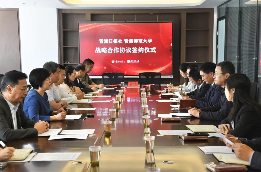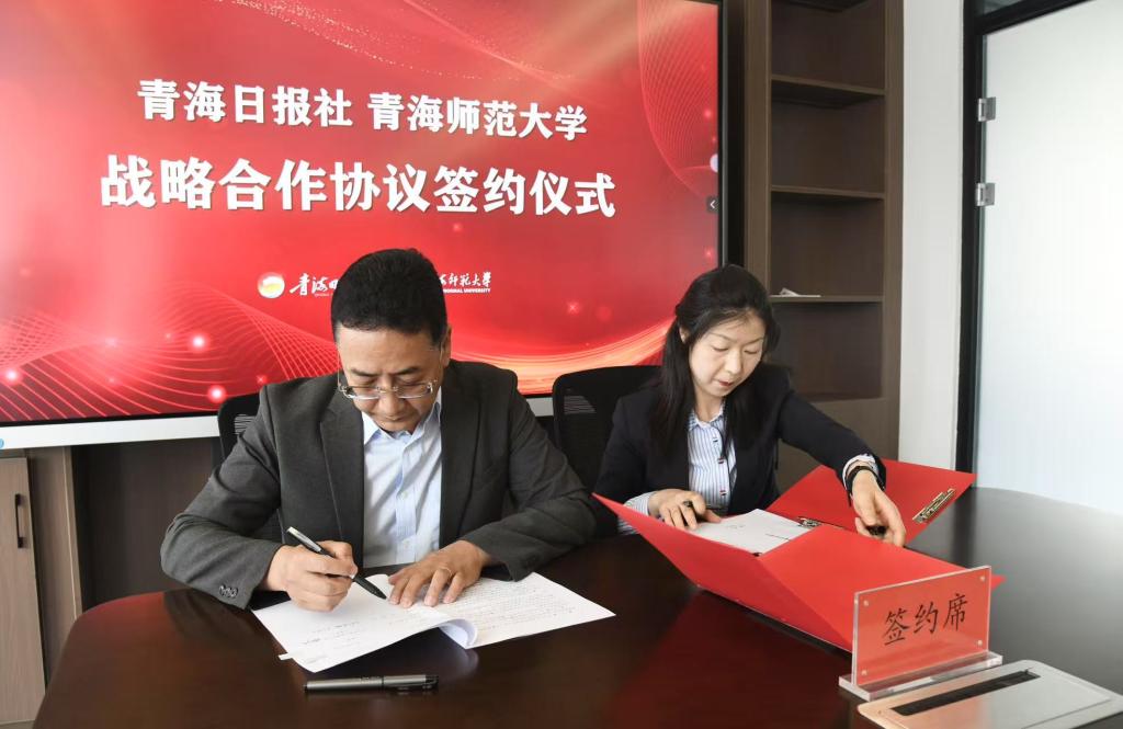 为进一步深化校媒合作,促进发展优势互补、资源共建共享,成果互惠共赢,协同打造校媒合作新样板,6月26日下午,beat365与青海日报社签订战略合作协议。校党委书记毛学荣,校党委常委、副校长程剑波及学校办公室、党委宣传部、科研处、发展规划处、藏语智能全国重点实验室、新闻学院负责人,青海日报社党组书记、社长苏海红,党组成员、副社长李乃银,党组成员、副总编辑洛加才让及相关部门负责人参加签约仪式。
