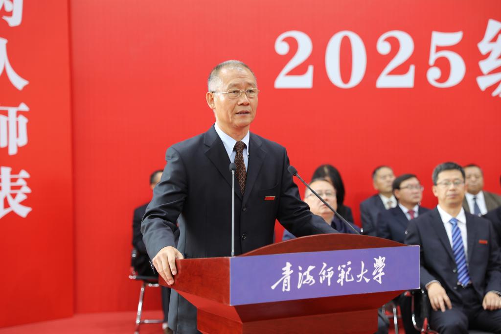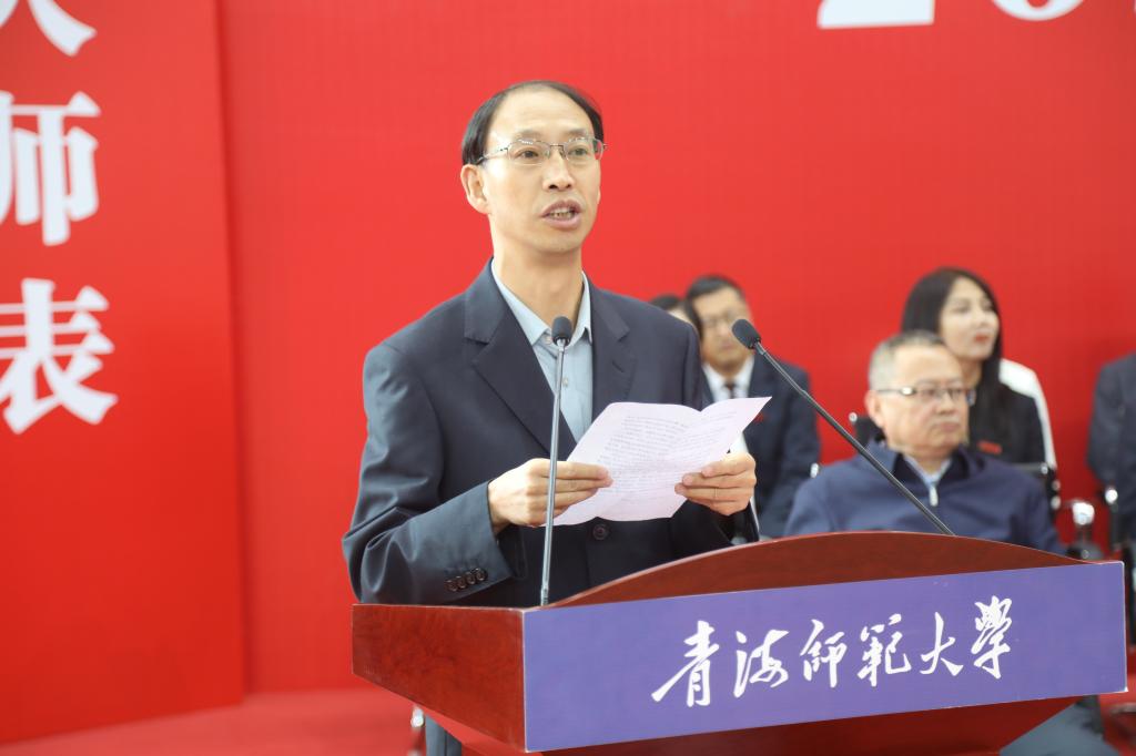 “青海省杰出教师”、地理科学学院博士生导师侯光良教授作为教师代表发言。他分享了自己求学任教的难忘历程,讲述了青海大地蕴藏的磅礴发展潜力与无限机遇,殷切嘱托新生勤学笃行、知行合一、胸怀家国,成长为兼具学识与见识的时代新人。