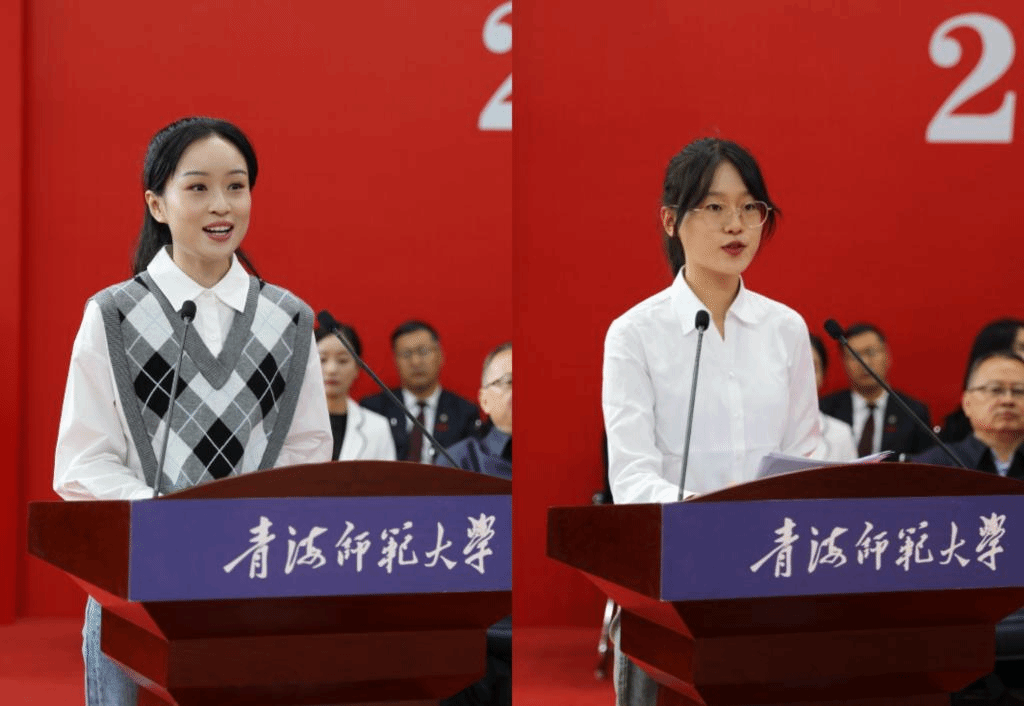 音乐学院2023级硕士研究生蔡悦、外国语学院2025级新生马文琪分别代表在校生和新生发言,蔡悦鼓励学弟学妹要沉心治学、积极探索,走出属于自己的辽阔道路;马文琪代表新生表态,将为教育强国建设贡献青春力量,努力成长为有理想信念、有道德情操、有扎实学识、有仁爱之心的“大先生”。