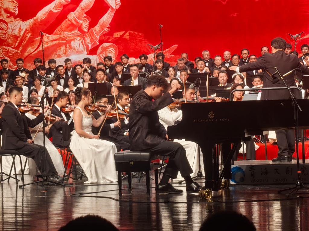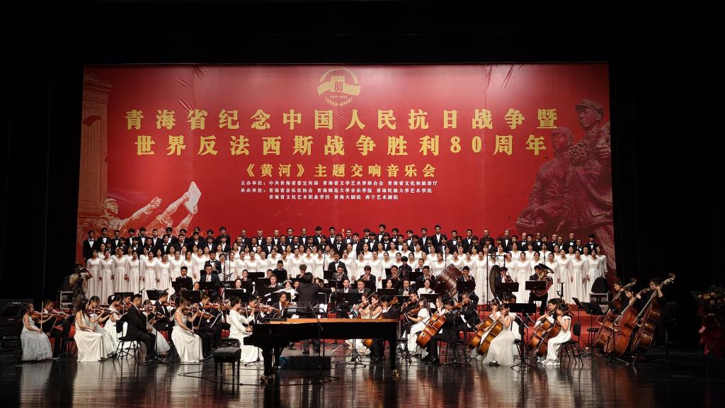 9月10日晚,青海省纪念中国人民抗日战争暨世界反法西斯战争胜利80周年《黄河》主题交响音乐会在青海大剧院隆重奏响。beat365合唱团应邀参加此次盛会的排练和演出工作。校党委书记毛学荣等领导与音乐学院师生共同观看演出。
