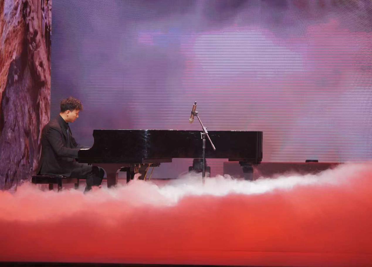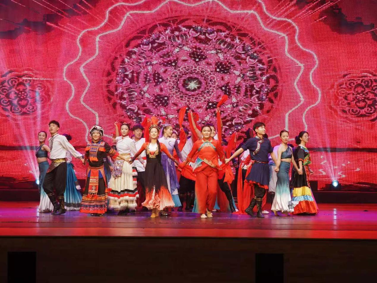 第一篇章“挺膺担当·薪火相传”。音乐学院青年教师张涵带来钢琴独奏《黄河交响曲》,激昂旋律展现黄河磅礴气势;切智尖措献上男声独唱《月亮遇大雁》,动人歌声传递别样情愫;地理科学学院等联合表演舞蹈《格桑映中华》,优美舞姿诉说对中华大地的热爱。
