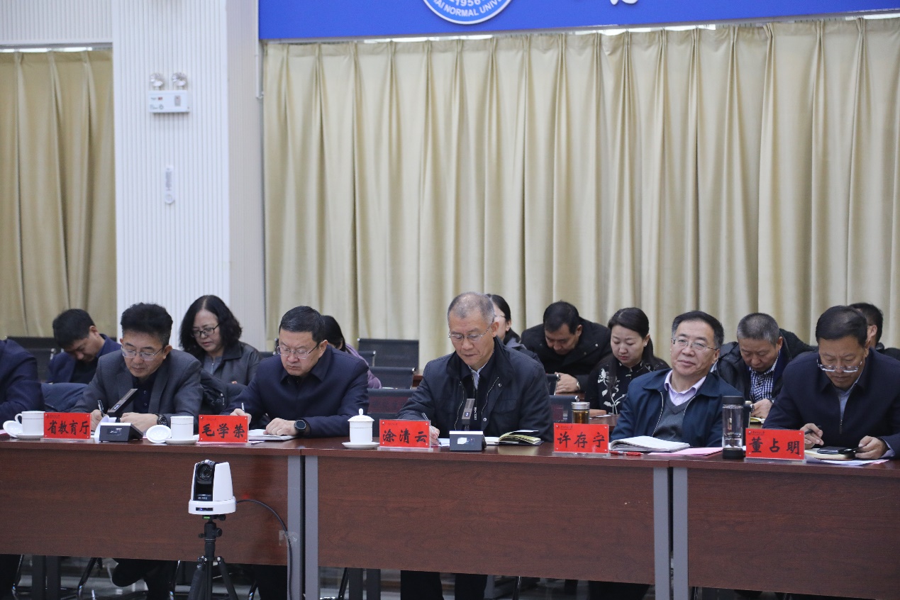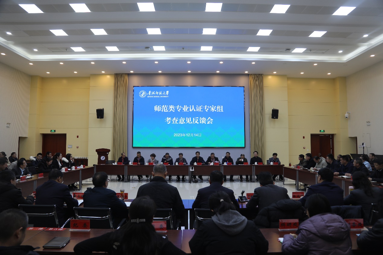 12月14日,学校在行政楼一楼学术报告厅召开历史学、化学、计算机科学与技术师范类专业认证专家组意见反馈会。专家组全体成员,省教育厅教师工作处负责人,校领导、职能部门和学院负责人及教师代表参加了会议,会议由联合认证专家组组长、华中师范大学洪早清教授主持。