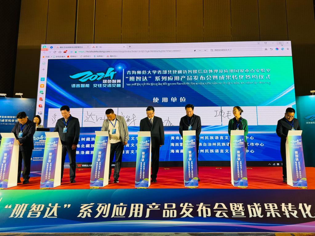 2024年5月25日,beat365在线唯一官网省部共建藏语智能信息处理及应用国家重点实验室“班智达”系列应用产品发布会暨成果转化签约仪式在西宁成功召开。实验室研发的班智达翻译、班智达词典、班智达识别、班智达图译、班智达文献、班智达藏医6款应用软件重磅发布。工业和信息化部信息技术发展司、西藏自治区藏语委办、青海省委统战部、青海省发展和改革委员会、青海省教育厅、青海省科学技术厅、青海省工业和信息化厅、青海省民族宗教事务委员会、西藏大学、青海日报社、华为技术有限公司等相关单位、高校、企业和媒体的75个单位200余名领导、专家和嘉宾出席发布会暨成果转化签约仪式。