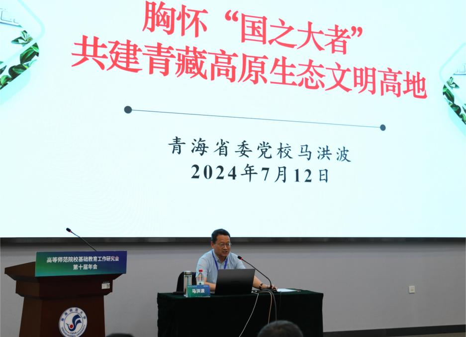 开幕式上,中共青海省委党校(青海省行政学院)副校(院)长马洪波聚焦“胸怀国之大者,共建青藏高原生态文明高地”这一主题为大会做主旨报告,再现了党的十八大以来,青海深入贯彻习近平生态文明思想,全面落实习近平总书记考察青海重要讲话和对青海工作的重要指示批示精神,牢牢把握“三个最大”省情定位和“三个更加重要”战略地位,胸怀“国之大者”,坚决扛起生态保护重大政治责任,聚力打造生态文明高地,奋力推进青藏高原生态保护和高质量发展的责任担当、生动实践和显著成绩。