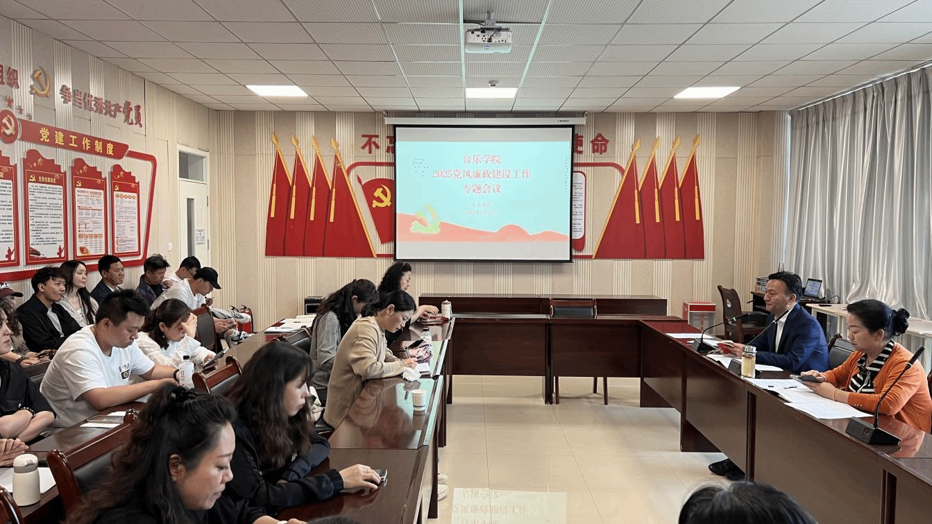 为深入贯彻落实全面从严治党要求,扎实推进学院党风廉政建设工作,6月25日,音乐学院召开2025党风廉政建设工作专题会议。全体教师参加会议。