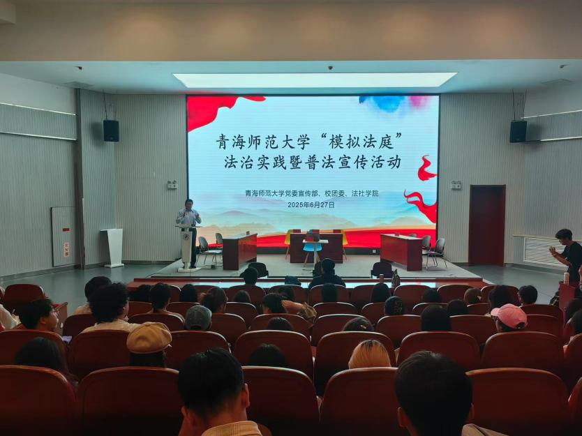 为强化学生法律意识和法治信仰,提升综合实践能力,6月27日下午,党委宣传部、校团委、法学与社会学学院在科技楼报告厅联合举办“模拟法庭”法治实践暨普法宣传活动。党委宣传部部长张瑜,法社学院党委副书记、校团委兼职副书记雍挺俊,青海德坤律师事务所主任合伙人李建文参加活动。