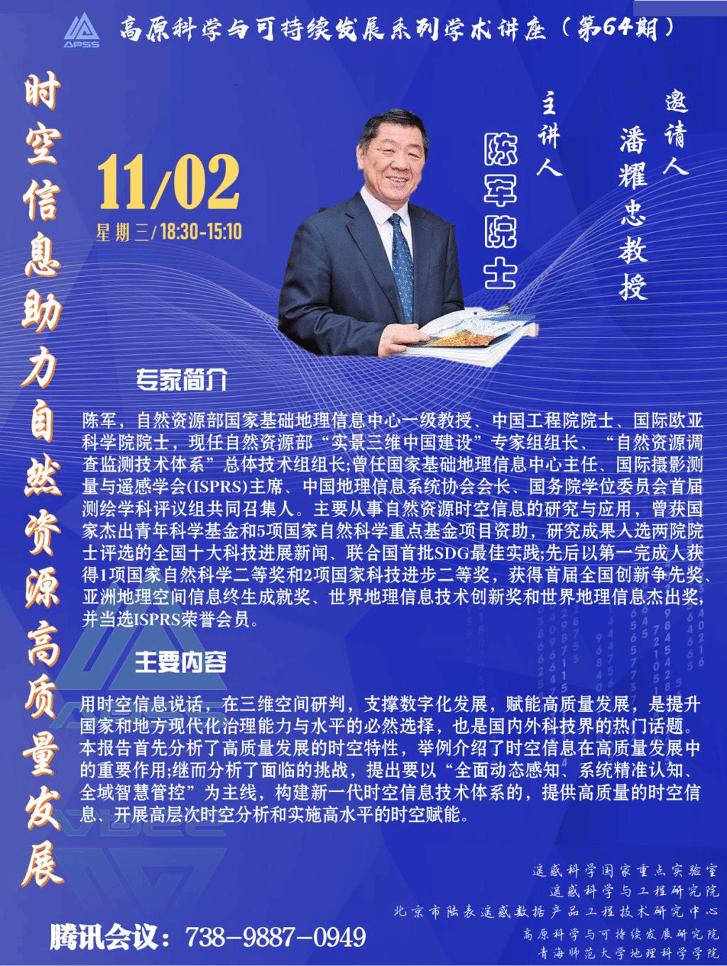 专家简介:陈军,自然资源部国家基础地理信息中心一级教授、中国工程院院士、国际欧亚科学院院士,现任自然资源部“实景三维中国建设”专家组组长、“自然资源调查监测技术体系”总体技术组组长;曾任国家基础地理信息中心主任、国际摄影测量与遥感学会(ISPRS)主席、中国地理信息系统协会会长、国务院学位委员会首届测绘学科评议组共同召集人。主要从事自然资源时空信息的研究与应用,曾获国家杰出青年科学基金和5项国家自然科学重点基金项目资助,研究成果入选两院院士评选的全国十大科技进展新闻、联合国首批SDG最佳实践;先后以第一完成人获得1项国家自然科学二等奖和2项国家科技进步二等奖,获得首届全国创新争先奖、亚洲地理空间信息终生成就奖、世界地理信息技术创新奖和世界地理信息杰出奖,并当选ISPRS荣誉会员。