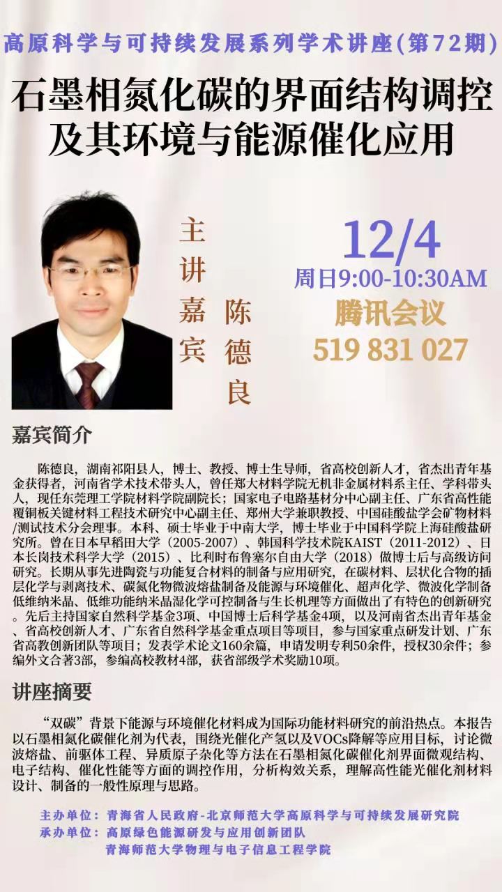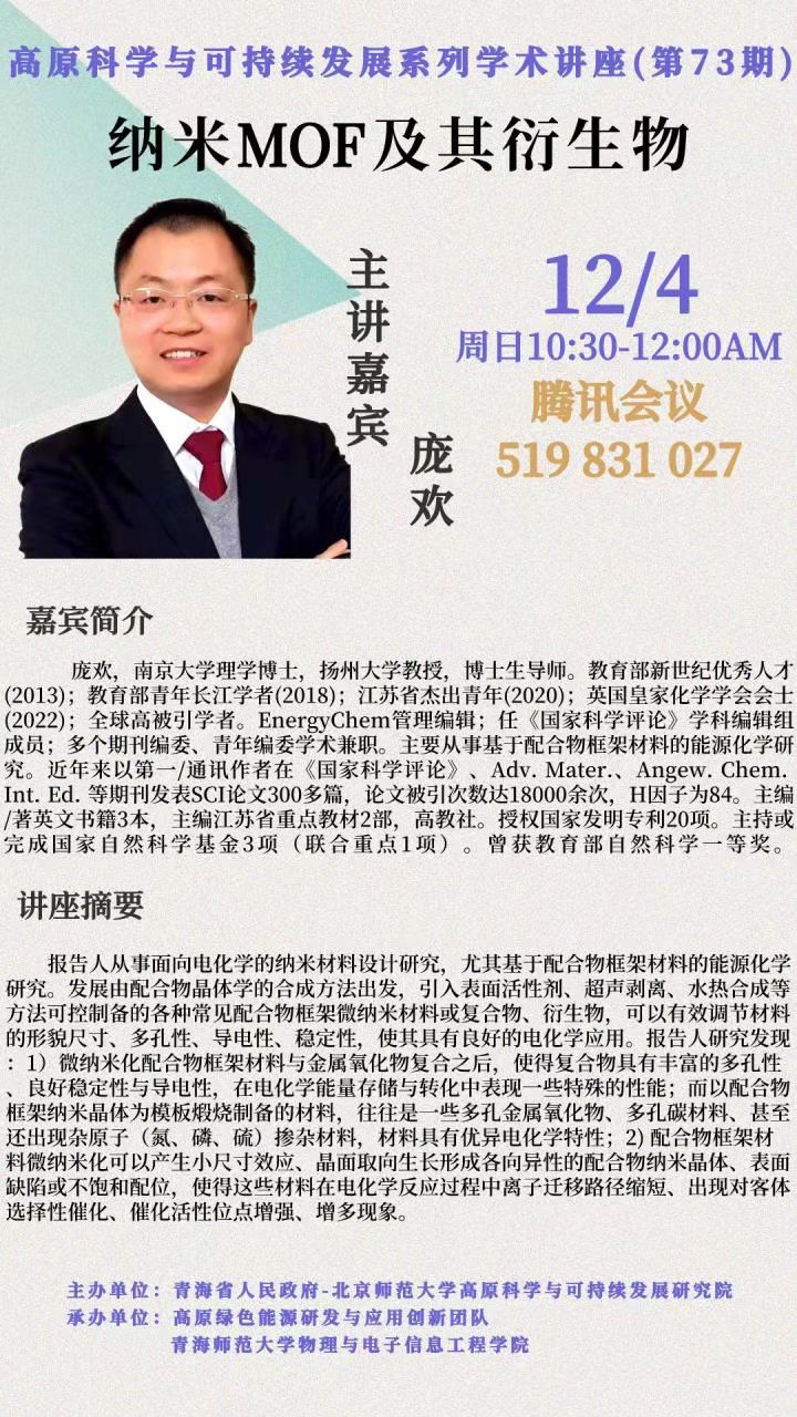 为进一步增进校内外学术交流,拓展校内师生学术研究视野,促进学校科研创新氛围,我院定于2022年12月4日(星期日)在线举办第72-75期高原科学与可持续发展系列学术讲座,欢迎届时参加交流。