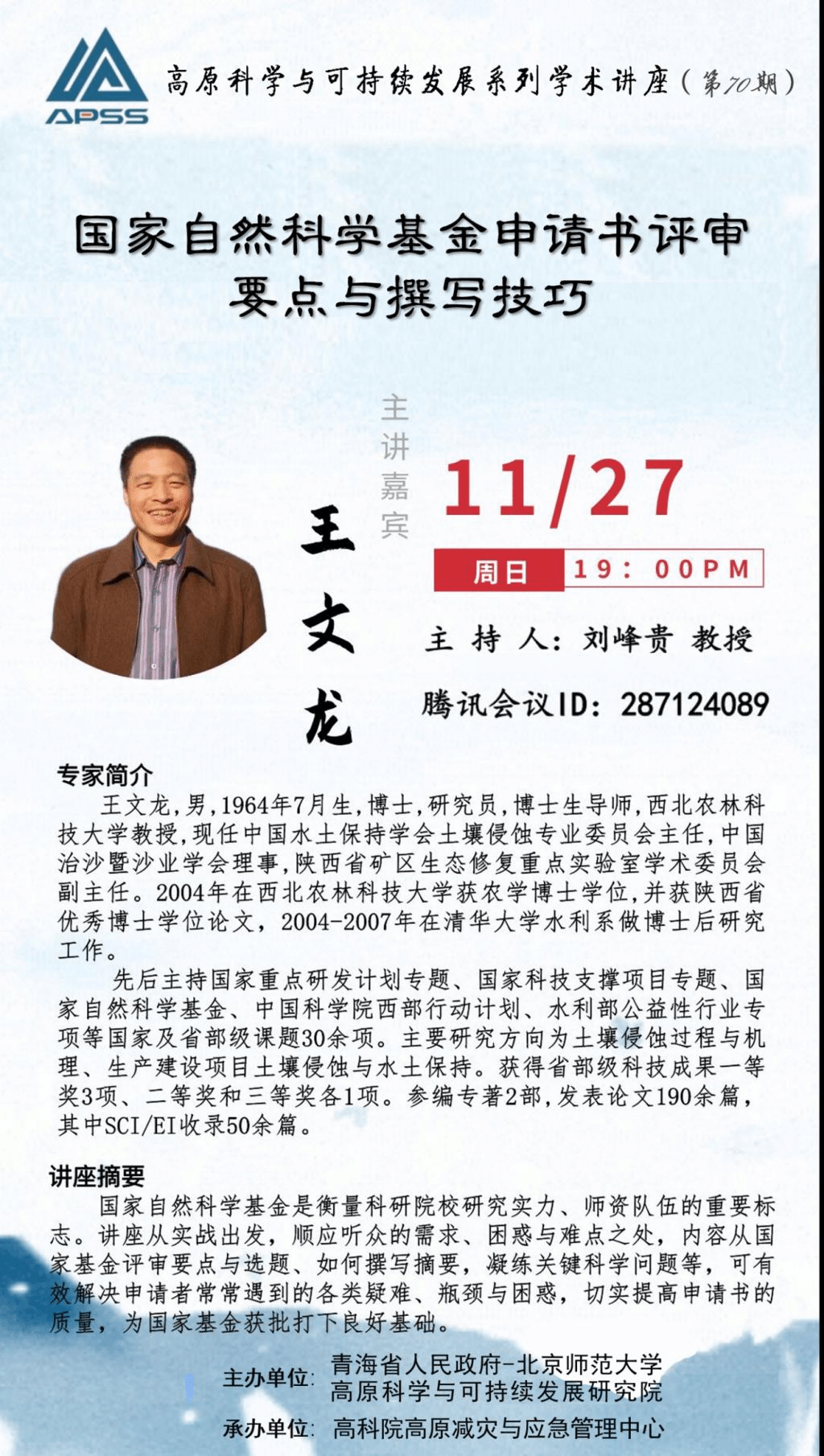 讲座主题:国家自然科学基金申请书评审要点与撰写技巧
