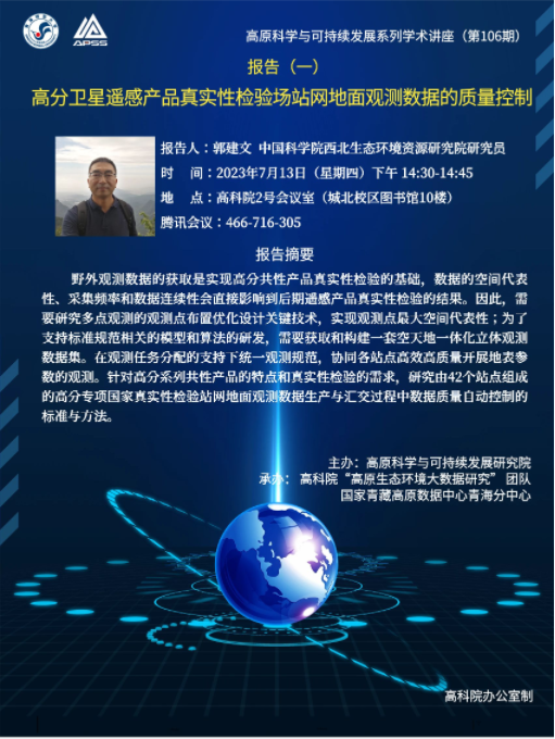 关于举办“高原科学与可持续发展系列学术讲座”(第106期)的通知