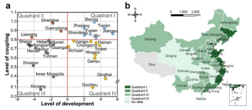 本研究从社会-生态系统耦合的整体性出发,构建了基于安全且公正运行空间与SDGs框架下多层次人类福祉耦合的区域可持续发展评估方法,揭示了中国省级区域可持续发展的水平、空间格局及影响因素。